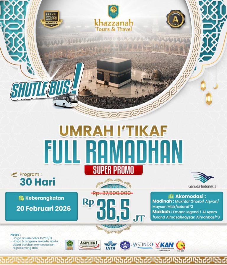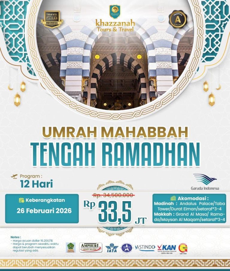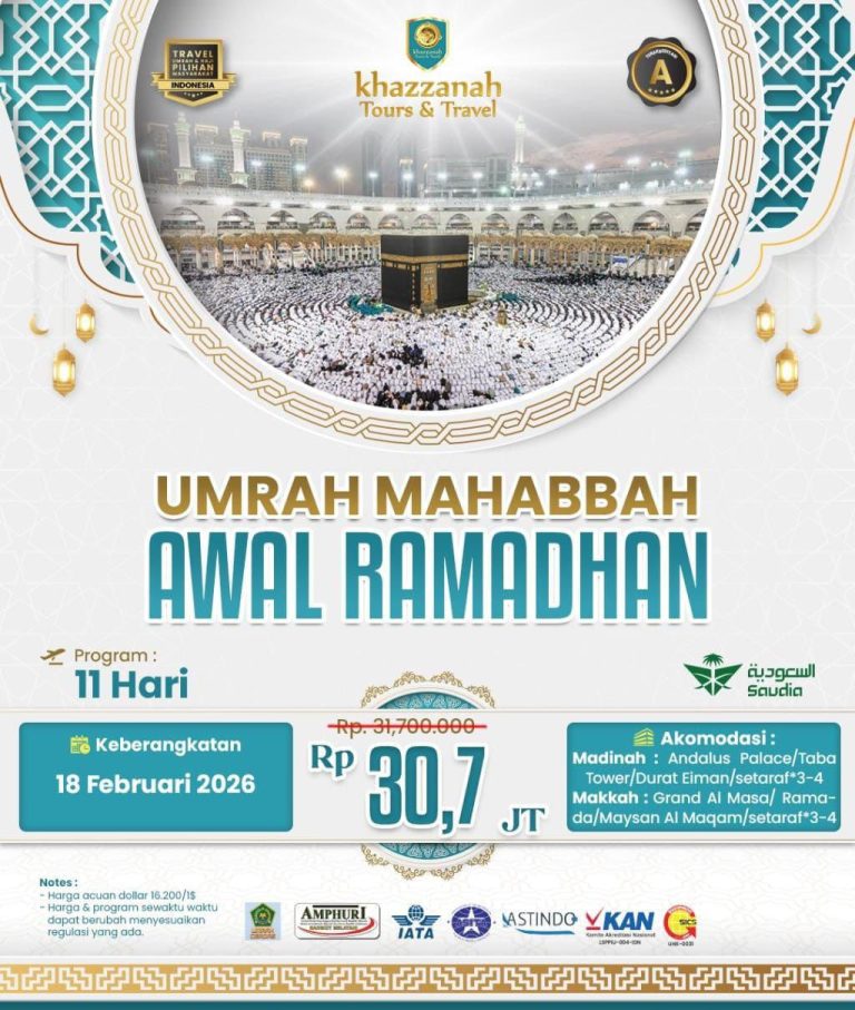 📿 Bersama Khazzanah Tours & Travel, mari wujudkan impian suci ini… karena setiap langkah menuju Baitullah, adalah langkah menuju ampunan dan cinta Allah yang tak terhingga.